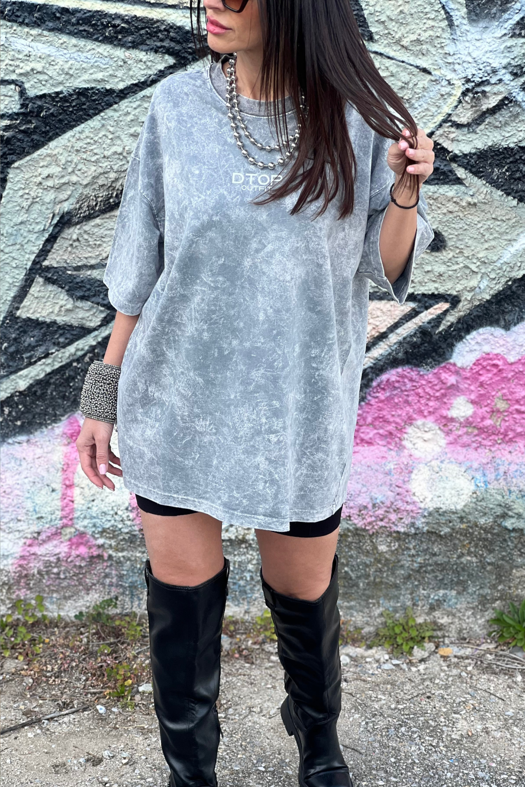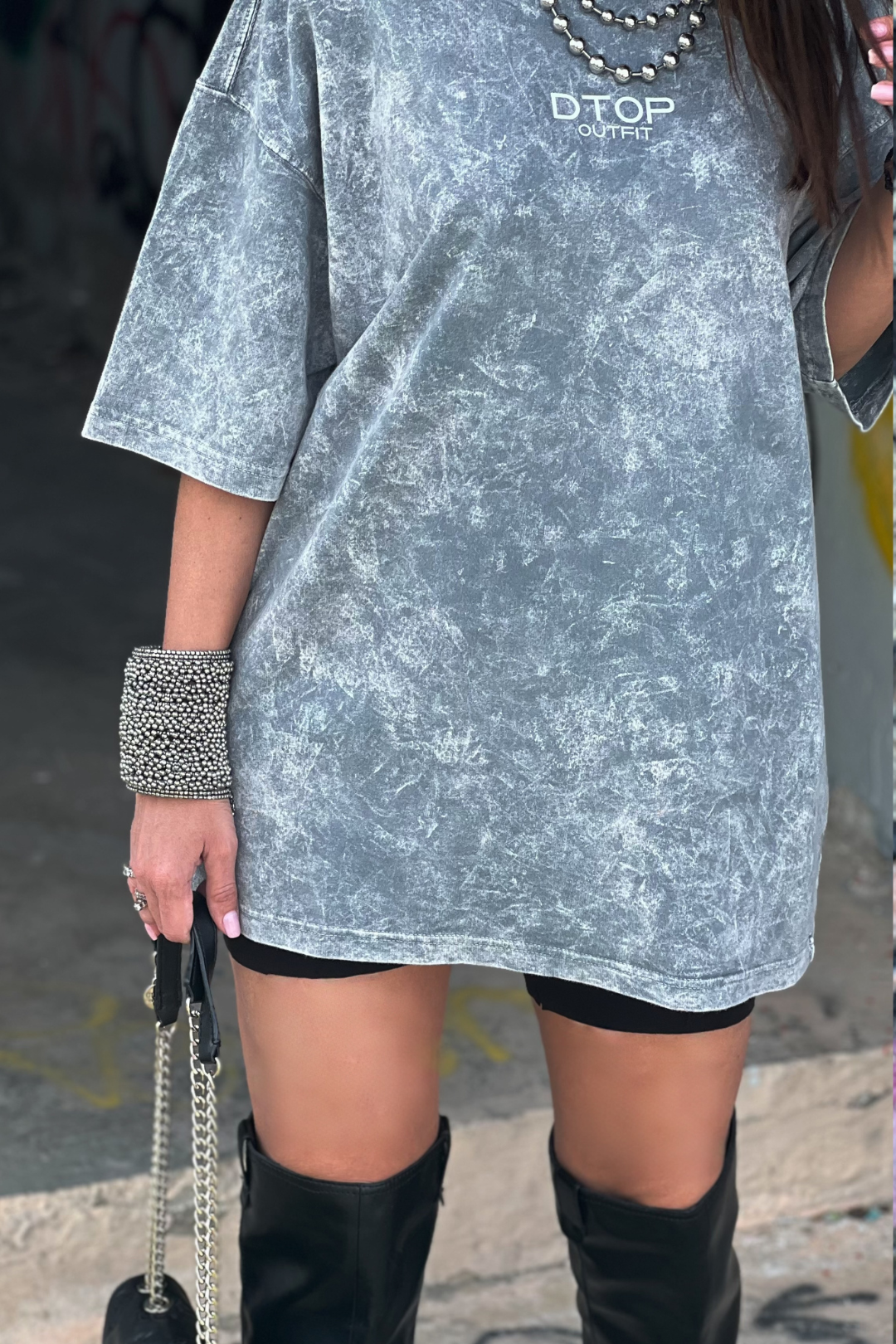 Ανακαλύψτε το απολυτο oversized t-shirt σε μοναδικο γκρι acid wash χρώμα!Η εξαιρετική ποιότητα και η απαλη υφή του προσφέρουν άνεση και στυλ σε κάθε εμφάνιση.Το μπροστινο μέρος διαθέτει το λευκο dtf print με το όνομα της εταιρείας "DTOP OUTFIT",ενώ στο πισω μέρος ,στο σβέρκο ,υπαρχει το διακριτικο σημα της εταιρείας.