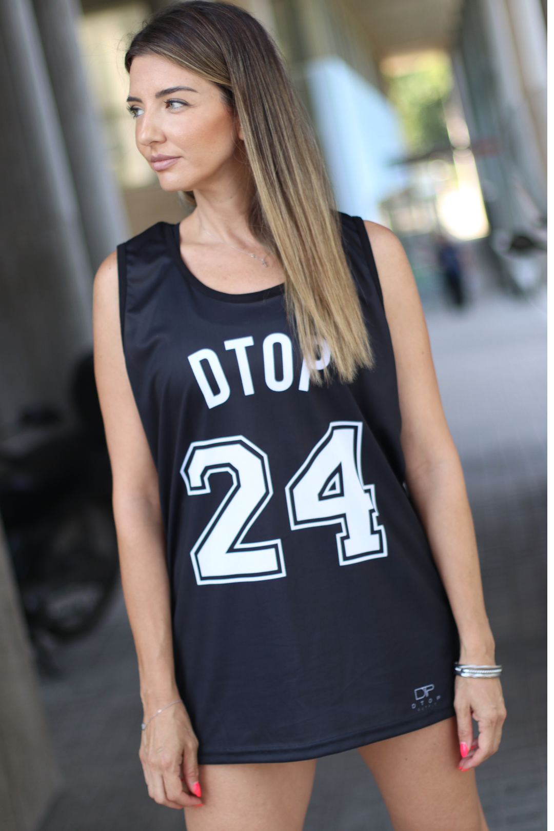 Ανετη και στυλατη , η μπασκετικη φανέλα της DTOP με το λογότυπο στο στήθος και τον αριθμό 24, δεν είναι μόνο για το γήπεδο.