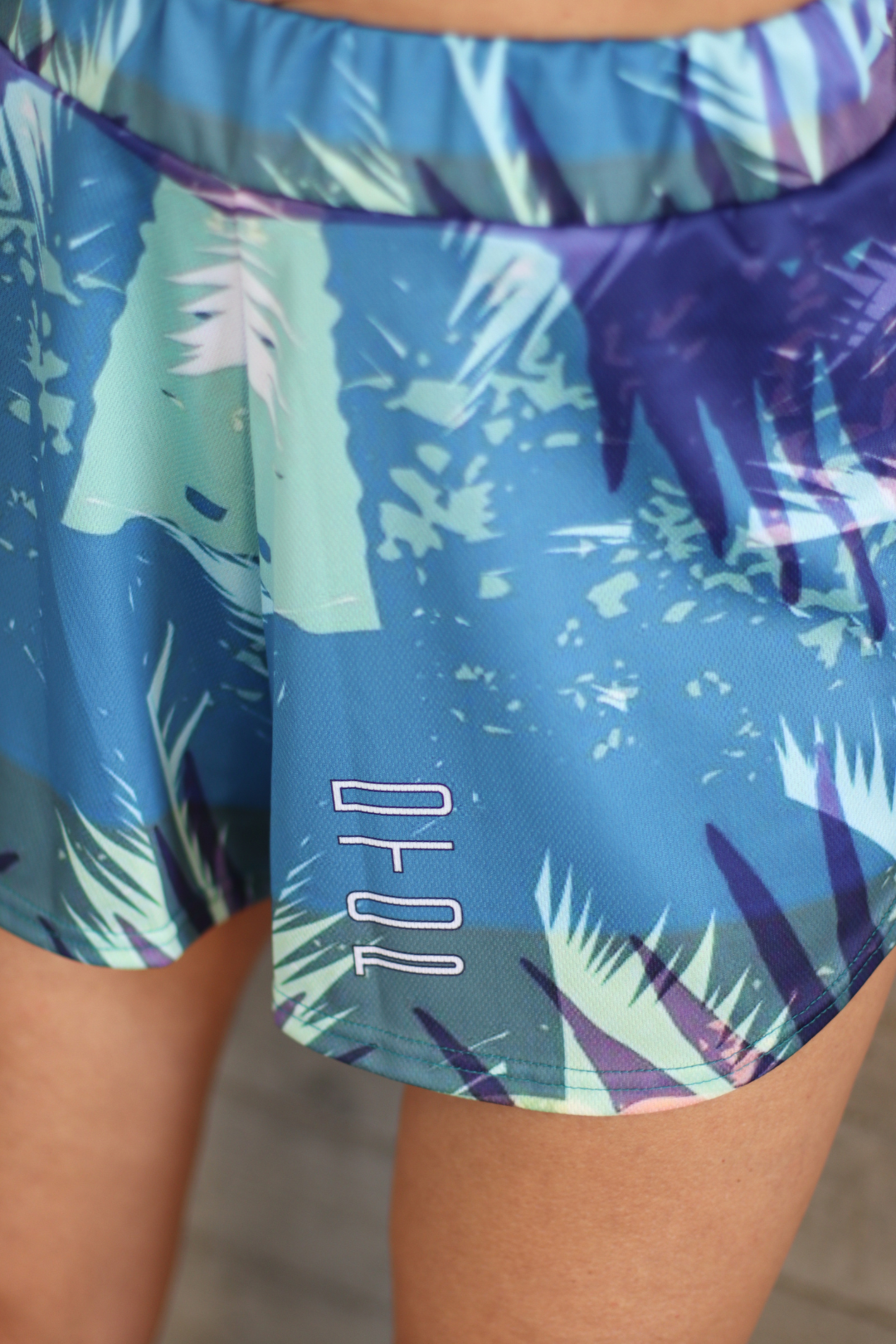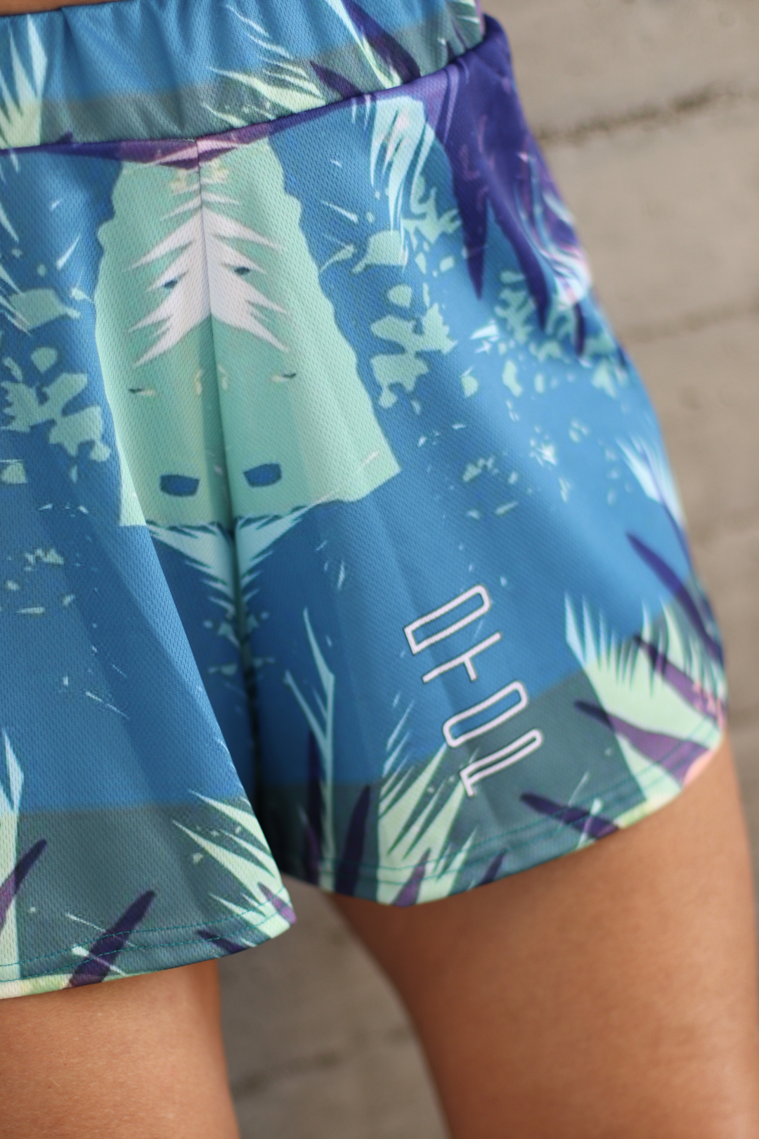 Με print τροπικών φοίνικων σε μπλε και μωβ αποχρώσεις , συνδυάζονται τέλεια με τη φανέλα , αλλα στεκονται και μονα τους με προσωπικοτητα.